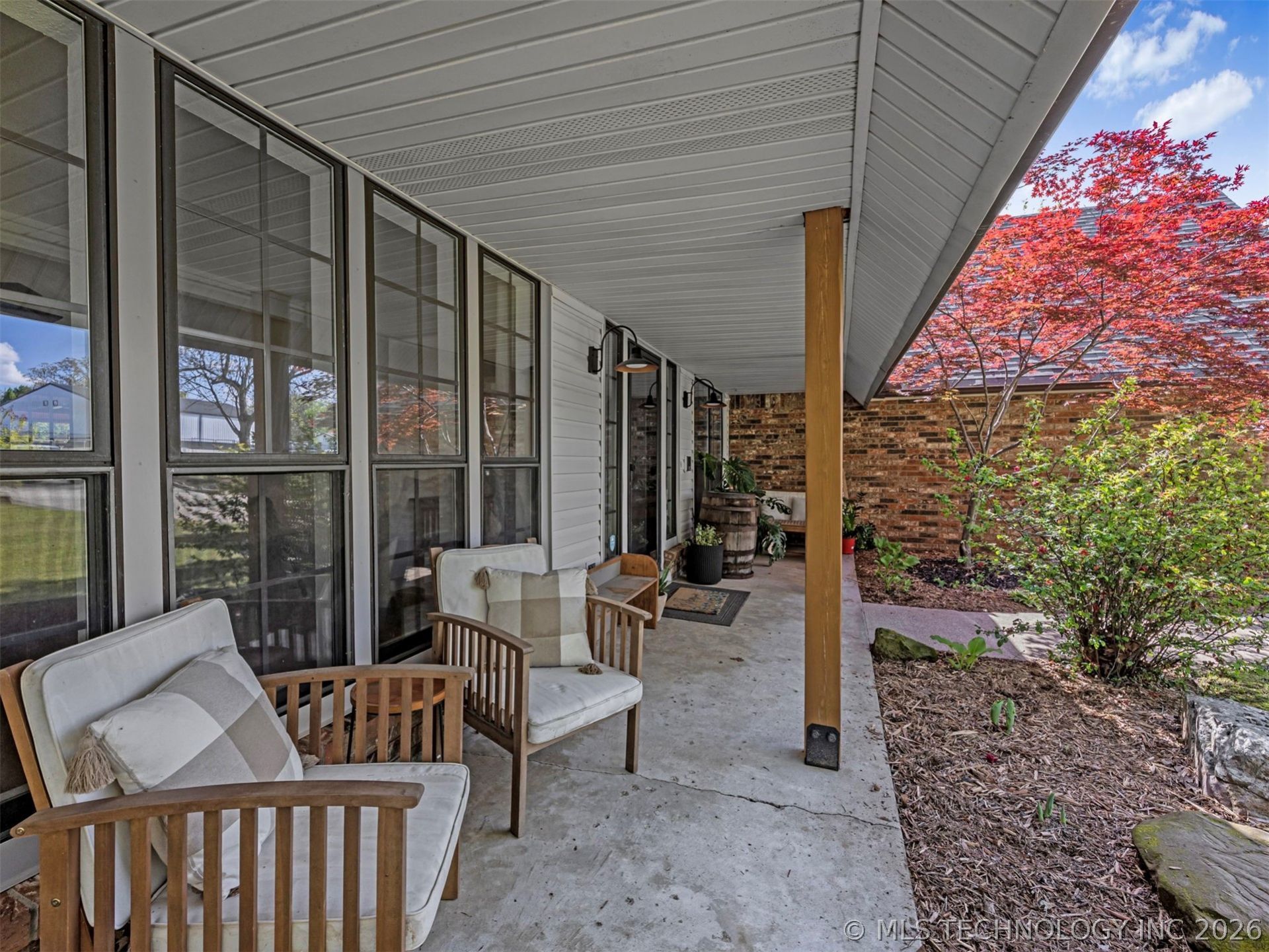 Tucked among mature trees on .72 acres in a desirable Broken Arrow neighborhood with no HOA, this recently renovated 4-bedroom, 2.5-bath home offers charm, flexibility, and a peaceful connection to its natural surroundings. The primary suite is located downstairs and features a fully renovated private bathroom, creating a comfortable main-level retreat. A convenient half bath for guests is located nearby. Upstairs includes three additional bedrooms, one oversized and ideal for a playroom, studio, or bonus room. The home's covered and screened porch invites quiet mornings and relaxed evenings overlooking the backyard, where deer and local wildlife are often seen. A seasonal creek and outdoor firepit area add to the setting and provide inviting spaces to gather and unwind. Recent interior updates blend fresh finishes with warmth and character, while the spacious lot offers room to explore, garden, or simply enjoy the privacy of a tucked-away neighborhood setting close to Broken Arrow and Coweta conveniences. A rare opportunity to enjoy updated living with space, nature, and flexibility in one welcoming property.