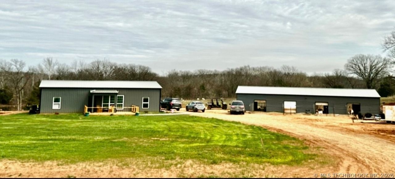 Welcome to your new nearly off grid home on 5 MOL acres in rural Pawnee County. This gem boasts 1500 feet of living space just recently constructed. This fully metal roofed and sided super insulated home is built to last a lifetime. All modern amenities provide ultimate comfort in a highly desired county atmosphere. Abundant wildlife is an understatement on this awesome property with a stocked pond while bordering the Black Bear Creek. Extra living space on property in a small full utility cabin. There is also a 28x70 ft fully insulated livestock barn out back that is an awesome space for show animals, horses, dog breeding etc. Less than 1 hour from Tulsa. Home located at end of county road so if privacy and seclusion is on your list this place is a must see. Also additional 24 acres MOL could be discussed.